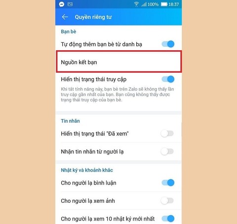 Bước 3: Chọn tiếp mục Nguồn kết bạn.